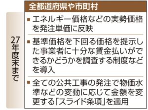 加速化プランは、発注時に作成する予定価格に、人件費やエネルギーコストなどの最新の実勢価格を反映させると明記のうえ、契約後にコストが上昇した場合は、契約内容の変更などへの誠実な対応を求めています。