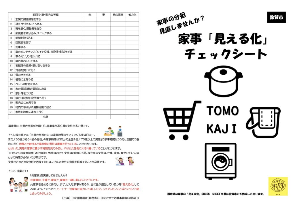 敦賀市のホームページにある、「やってみよう!家事「見える化 チェックシート」でそのことは如実に分かります。